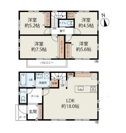 | 備考 BELS/省エネ基準適合認定書あり / 駐車2台可 / 2沿線以上利用可 / LDK18畳以上 / システムキッチン / 浴室乾燥機 / 全居室収納 / 閑静な住宅地 / 総合病院 徒歩10分以内 / 庭 / 対面式キッチン / トイレ2ヶ所 / 浴室1坪以上 / 2階建 / 南庭 / 全居室フローリング / リビング階段 / 小学校 徒歩10分以内 |